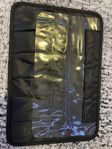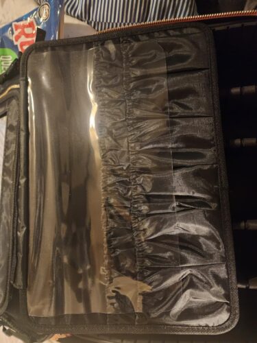 The removable pocket accessory is a perfect addition to hold cou tress makeup brushes, beauty tools, makeup etc. It has a clear plastic protector that js easily able to be rolled to the backside at the top and quickly flipped back in place to protect your brushes when not in use!